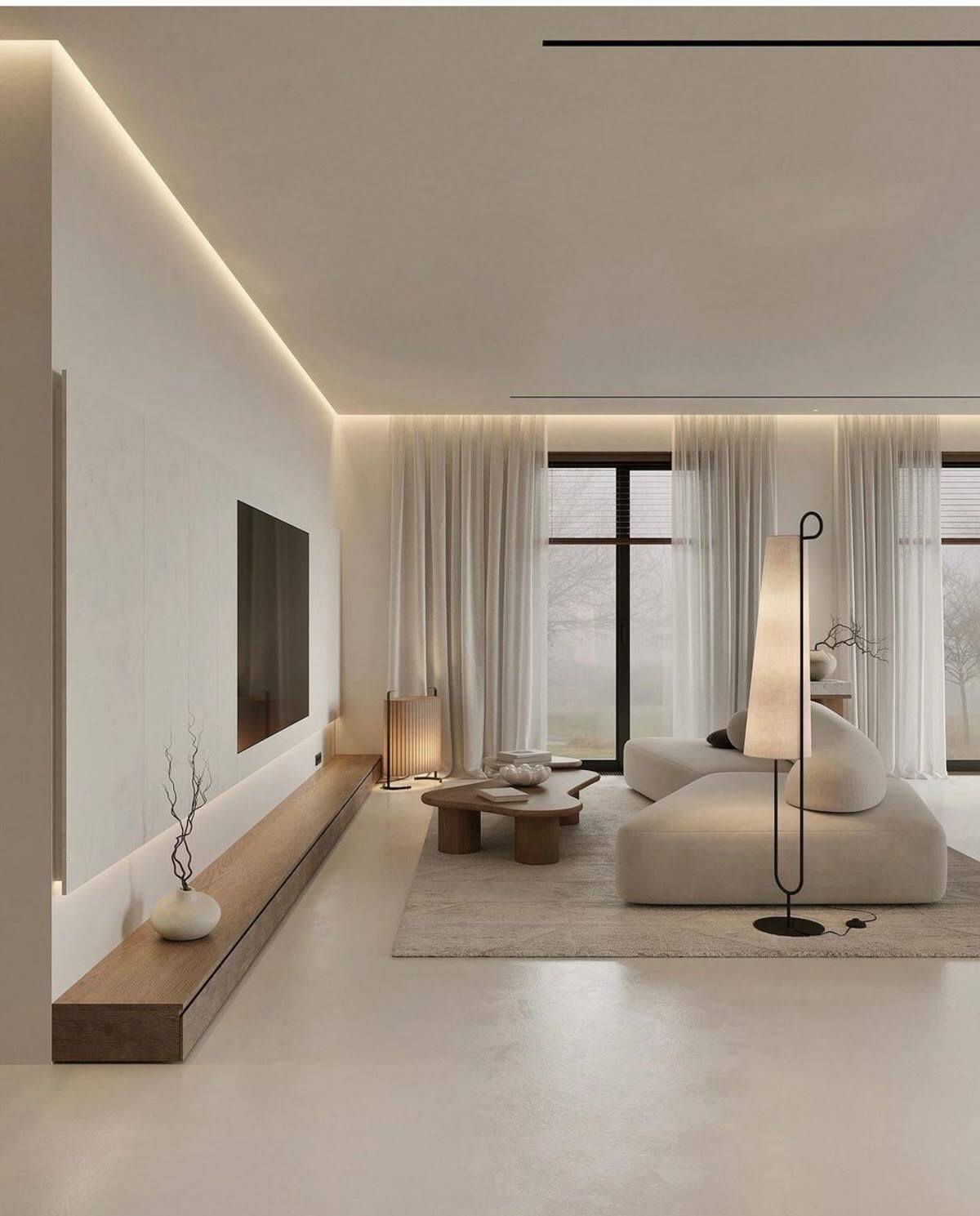 Один из самых эффектных приемов. Мягкий отраженный свет визуально делает потолок выше, добавляет глубины и создает уют — особенно вечером. Стоит недорого, но визуально «дорогой» приём.
