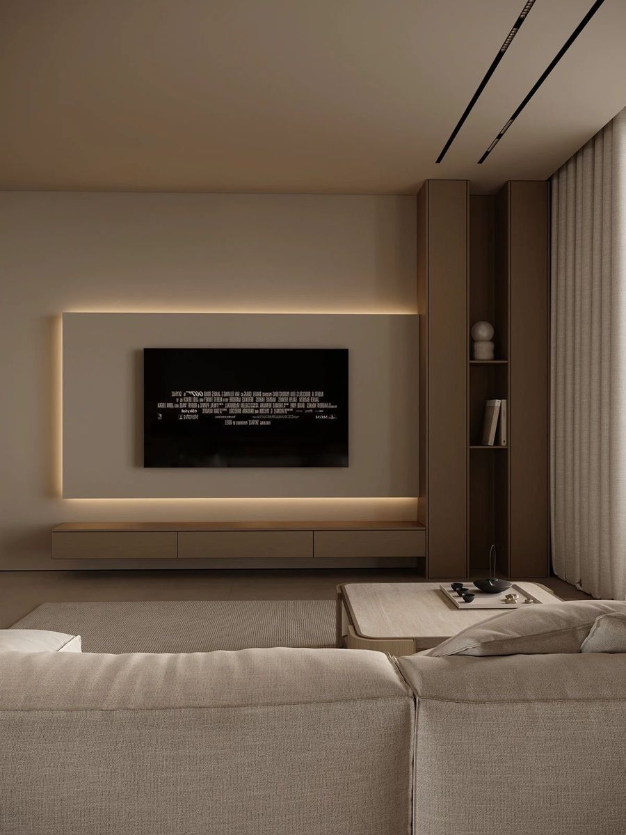 Дает мягкое свечение, снижает контраст между экраном и темной стеной — глаза меньше устают, а интерьер выглядит атмосферно.